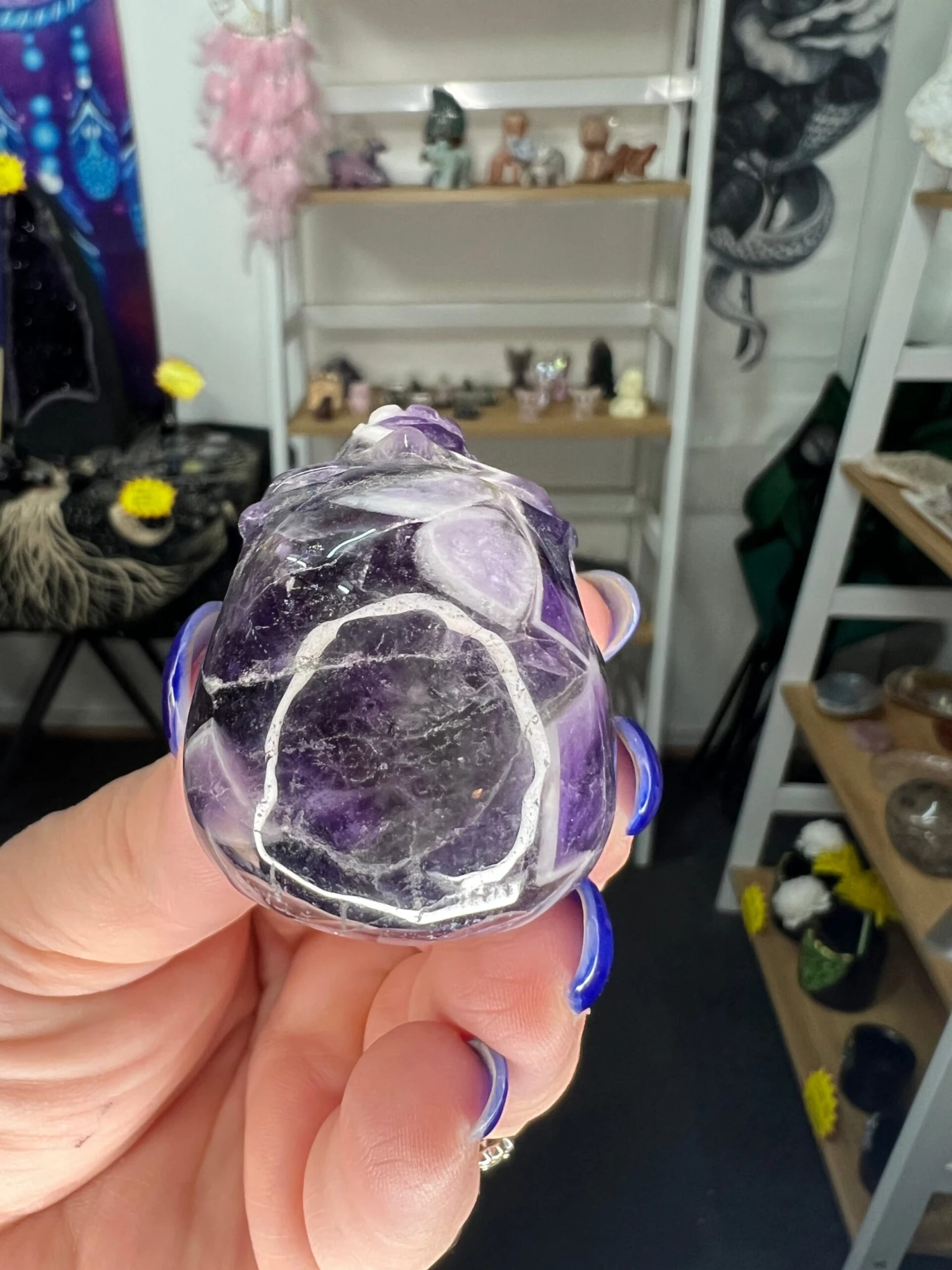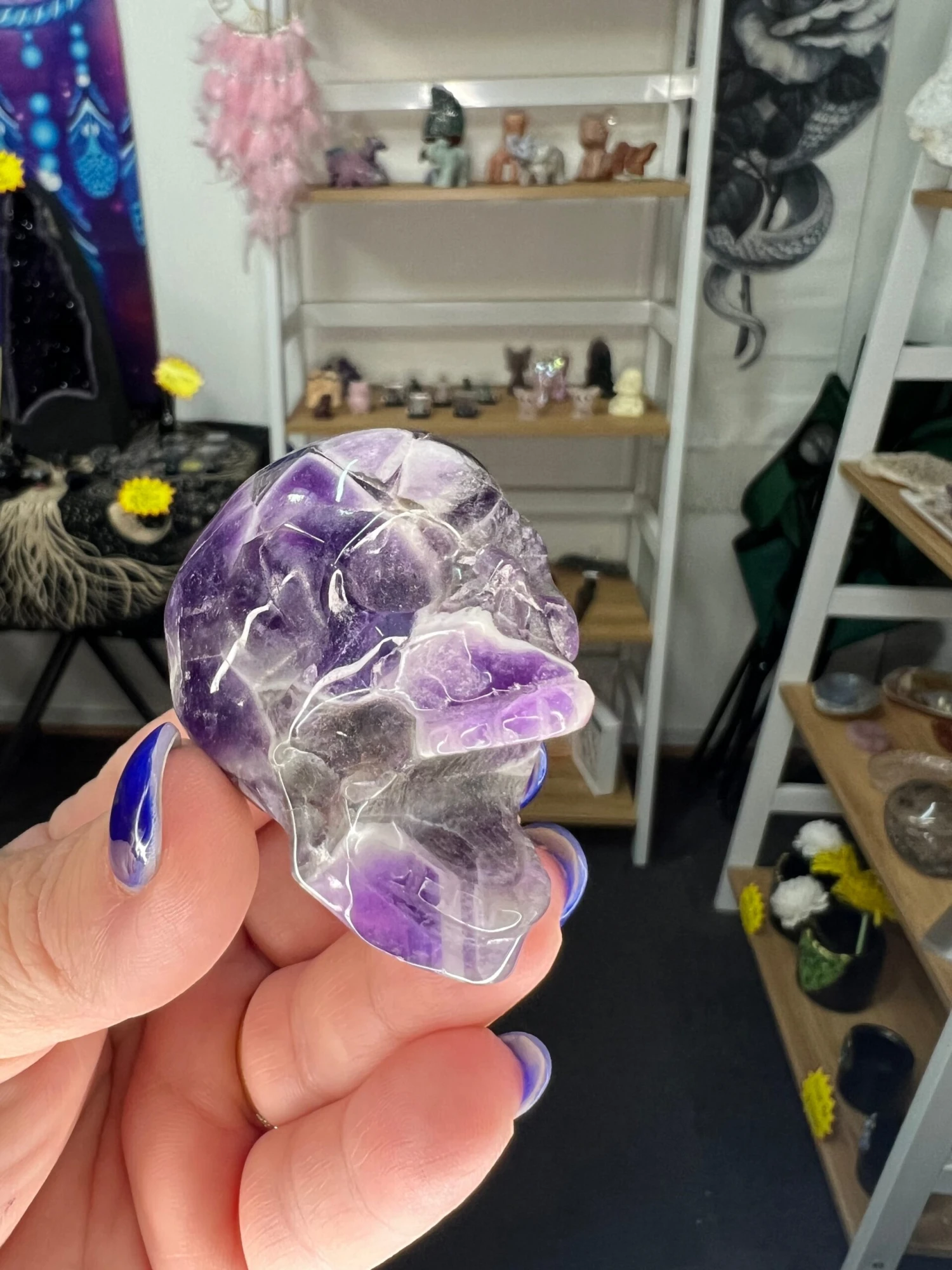 Chevron / Dream Amethyst Skull with Lepidolite Base Set