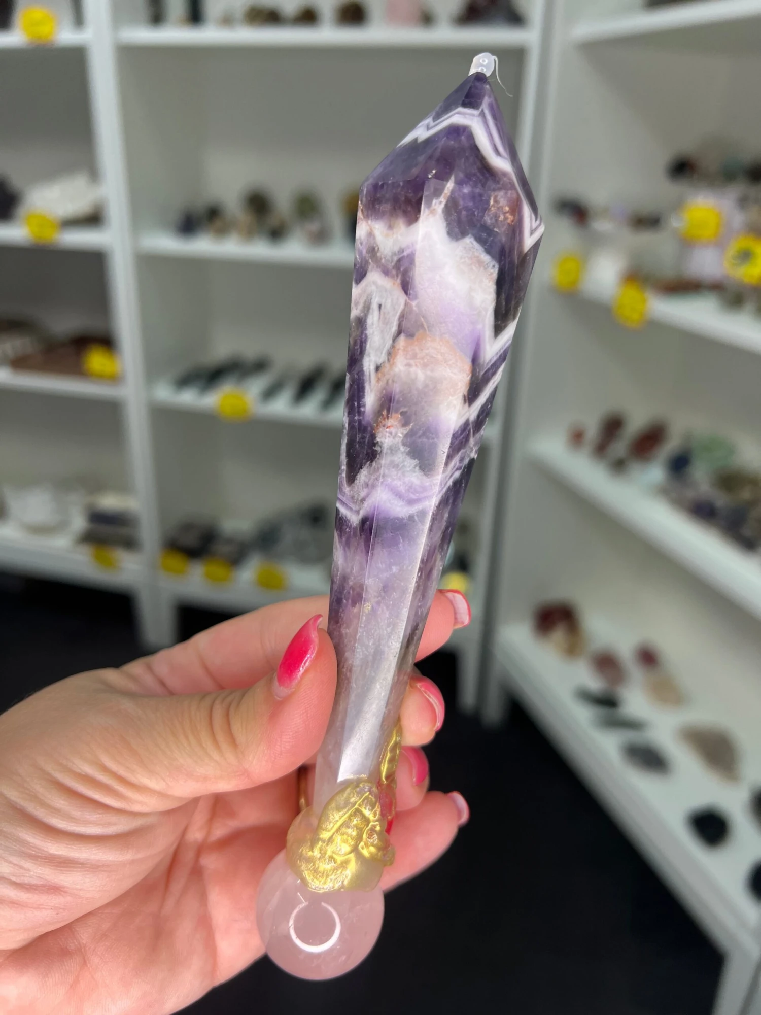 Chevron / Dream Amethyst with Rose Quartz Wand