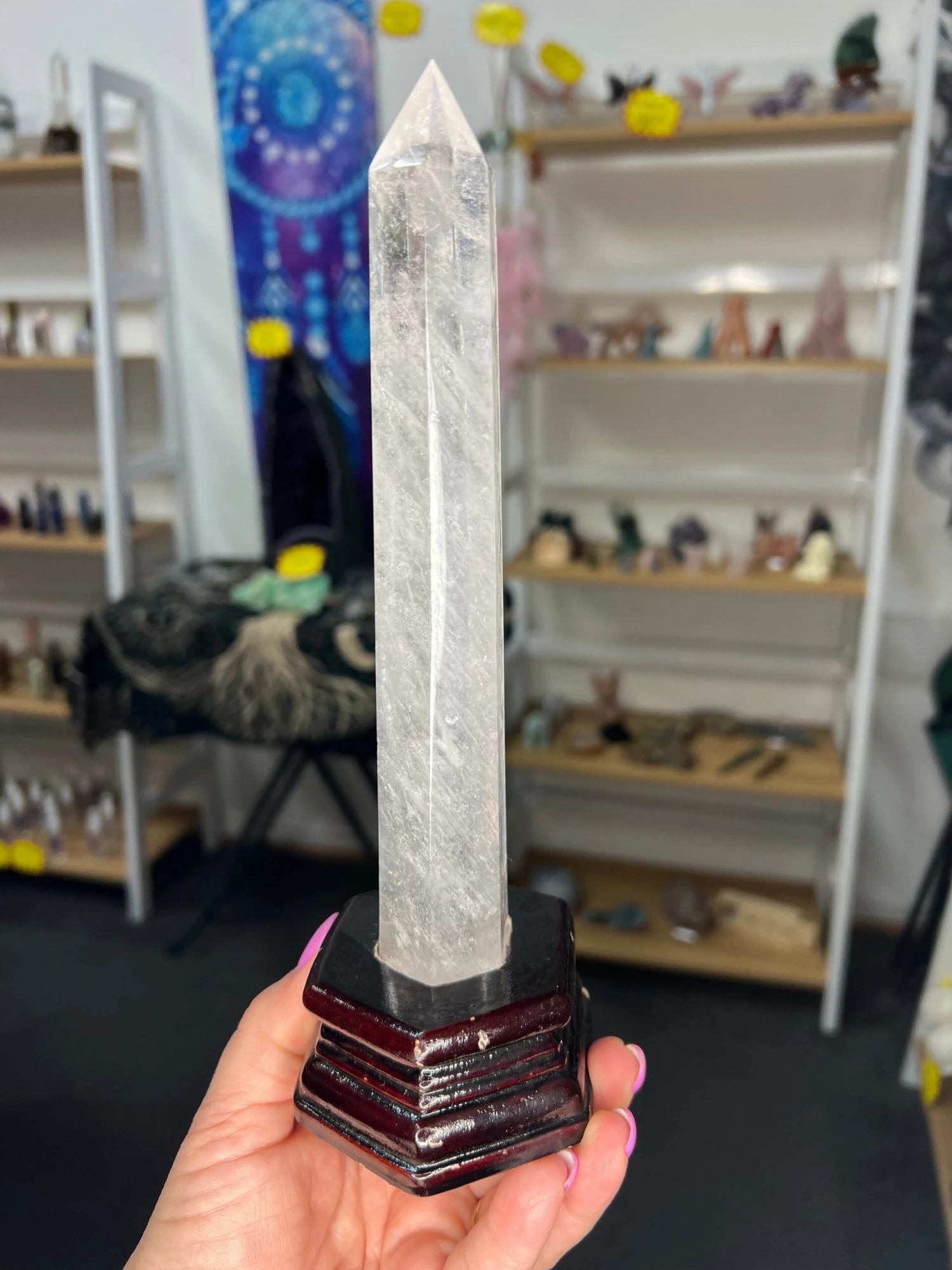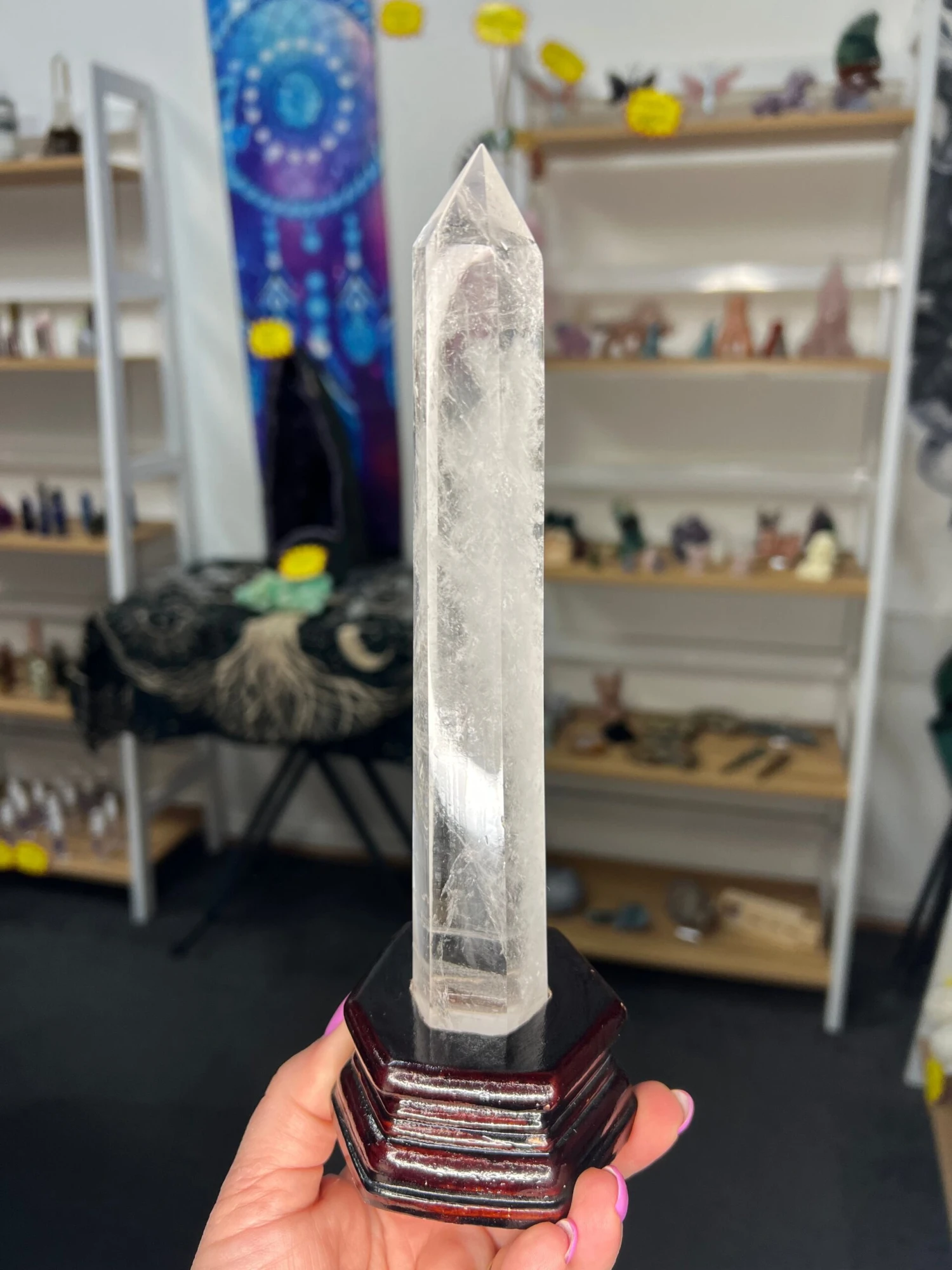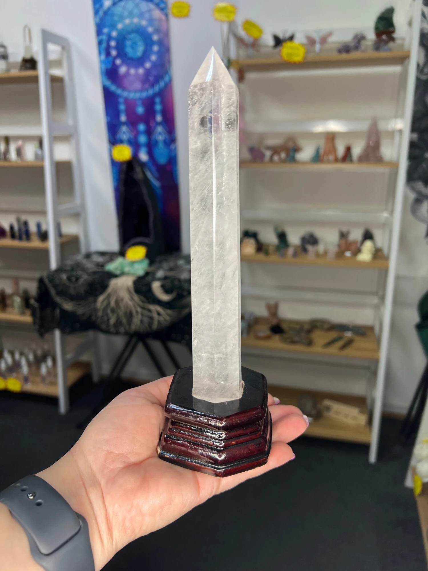 Clear Quartz Tower with Wooden Stand