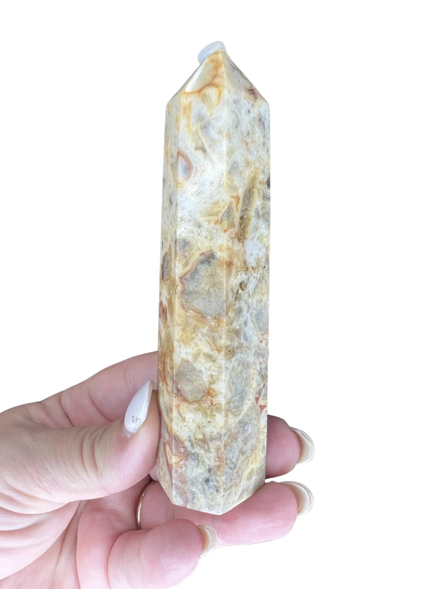 Crazy lace agate is commonly referred to as the “laughter stone,” or “happy lace.” It’s a balancing and protecting stone, believed to ward off the “evil eye,” bringing joy and absorbing emotional pain.