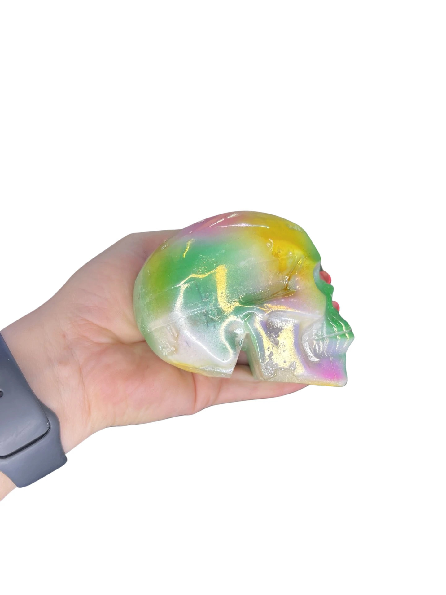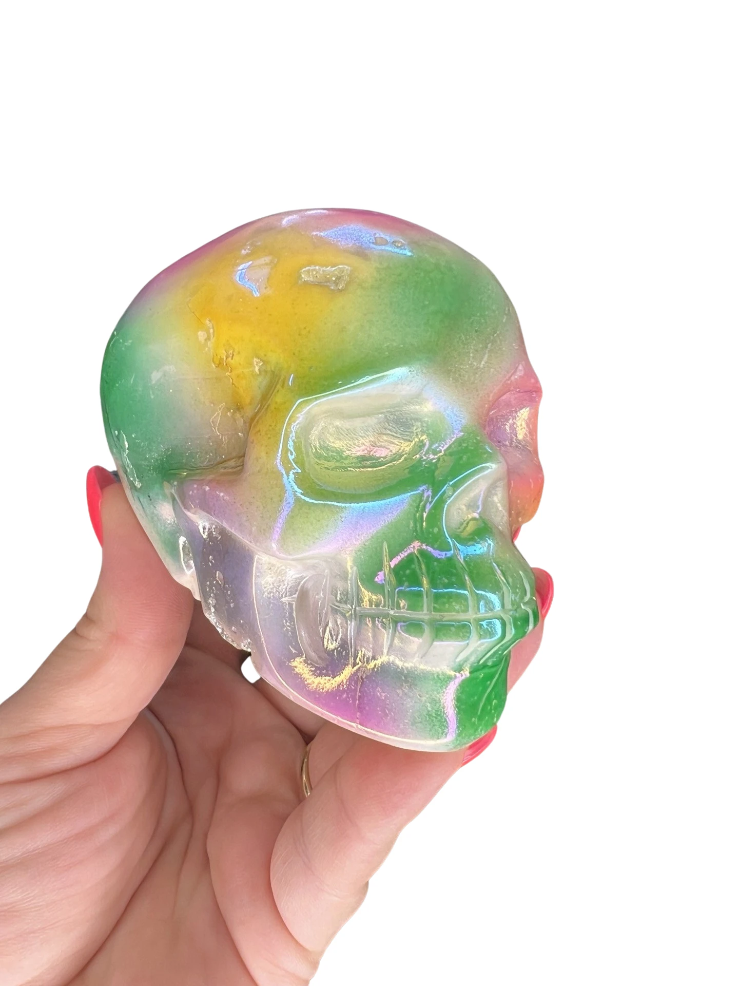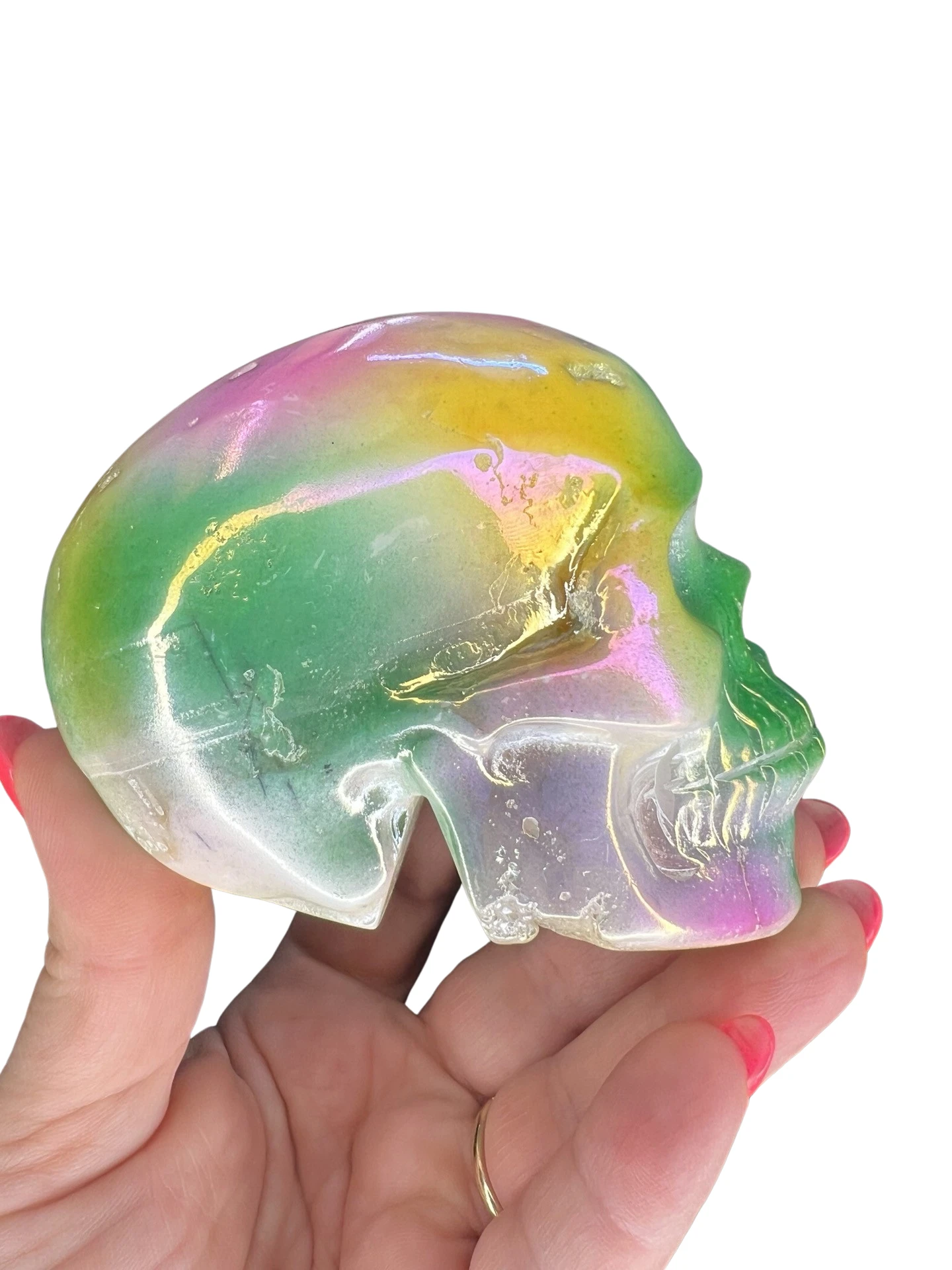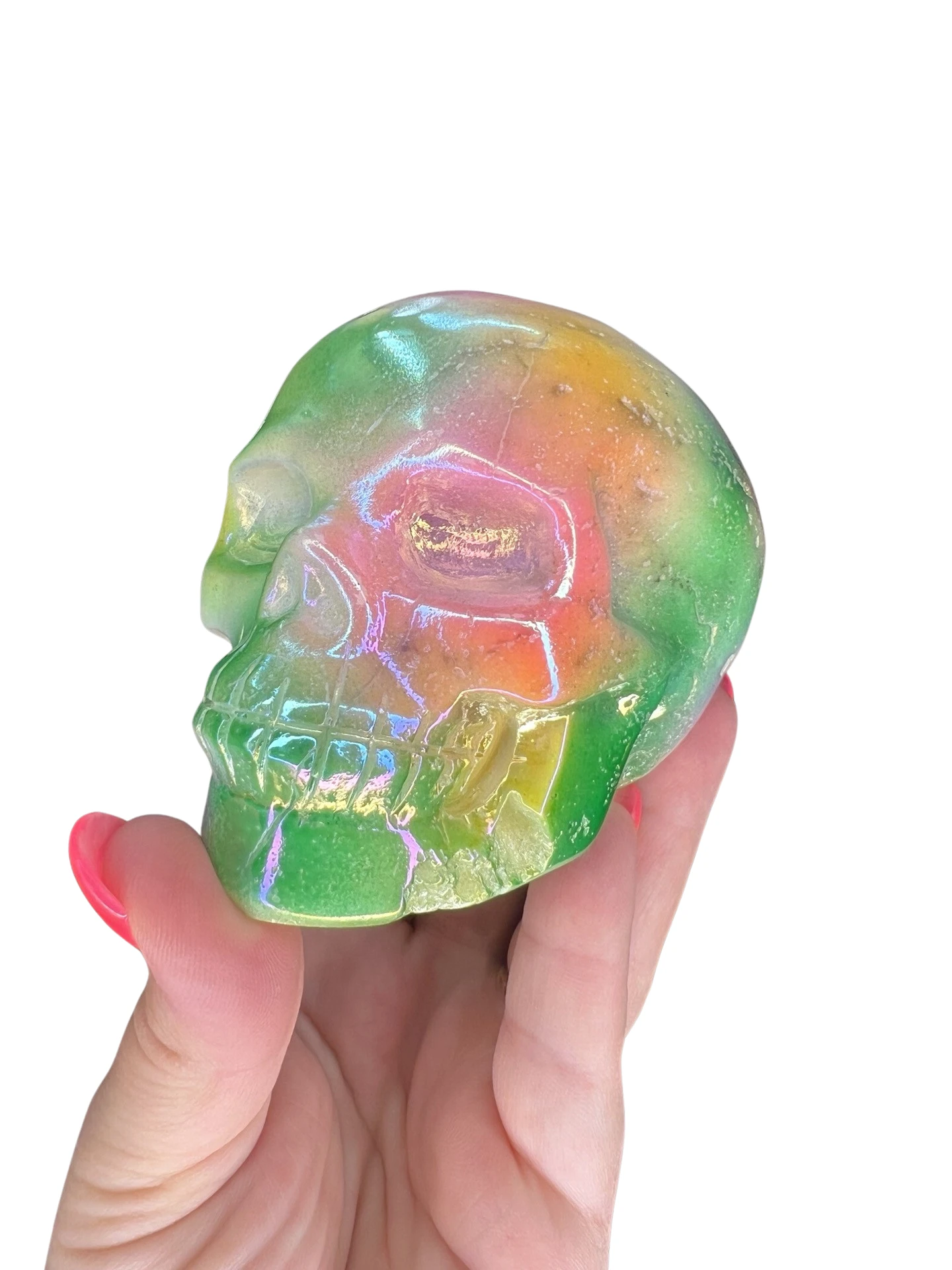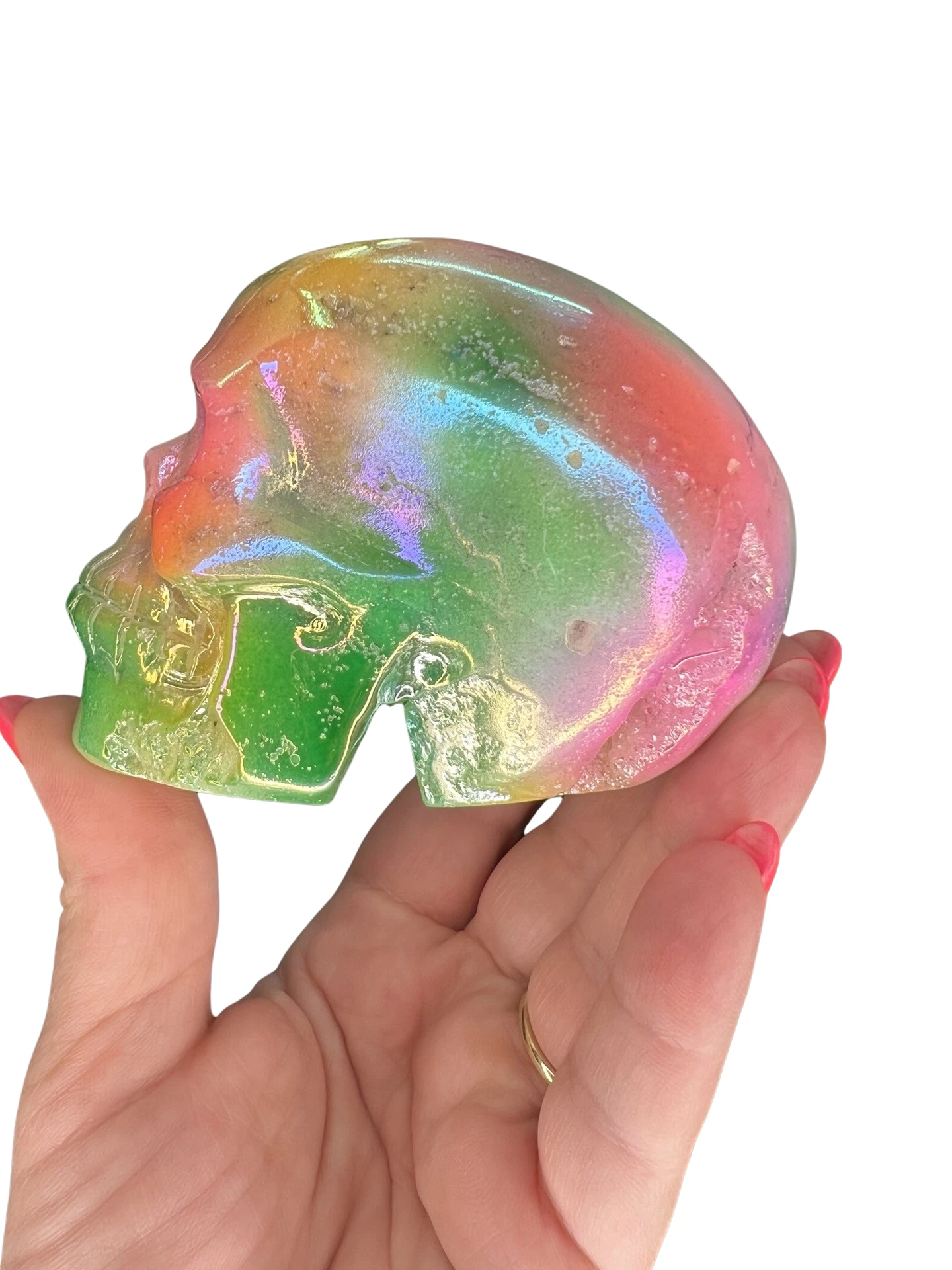 Druzy Aura White Agate Skull Carving