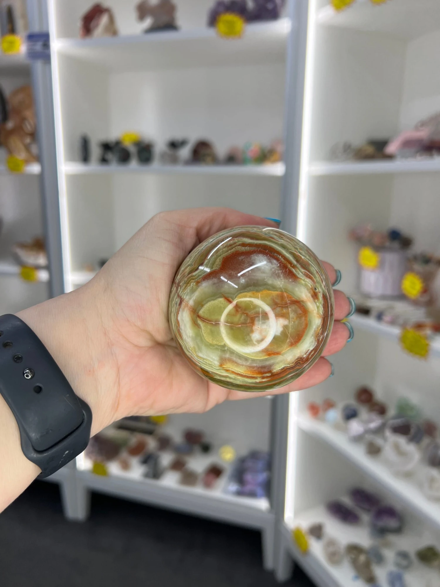 Green Onyx Sphere on Stand