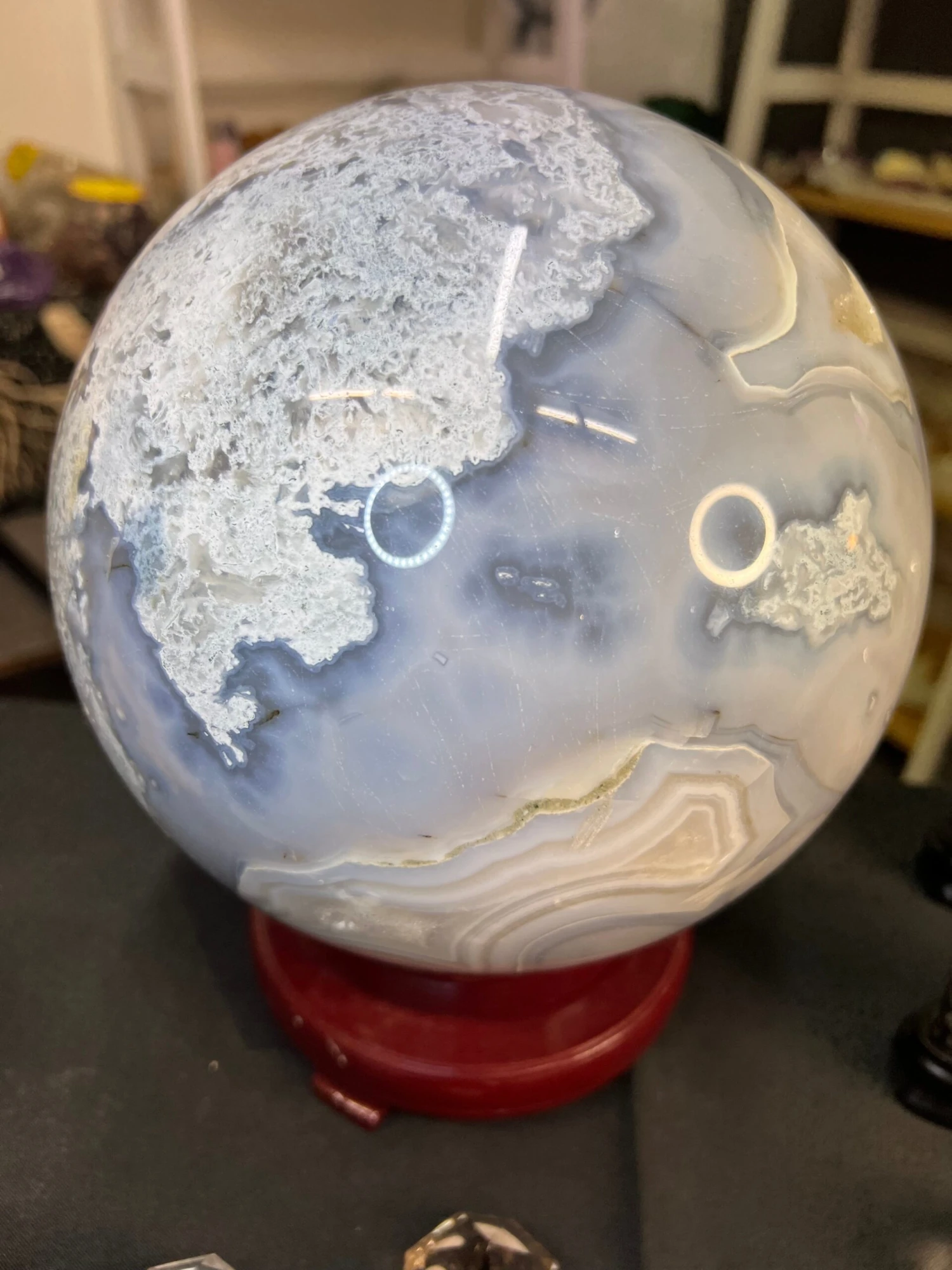 Huge Blue Moss Agate Sphere with Rotating Stand