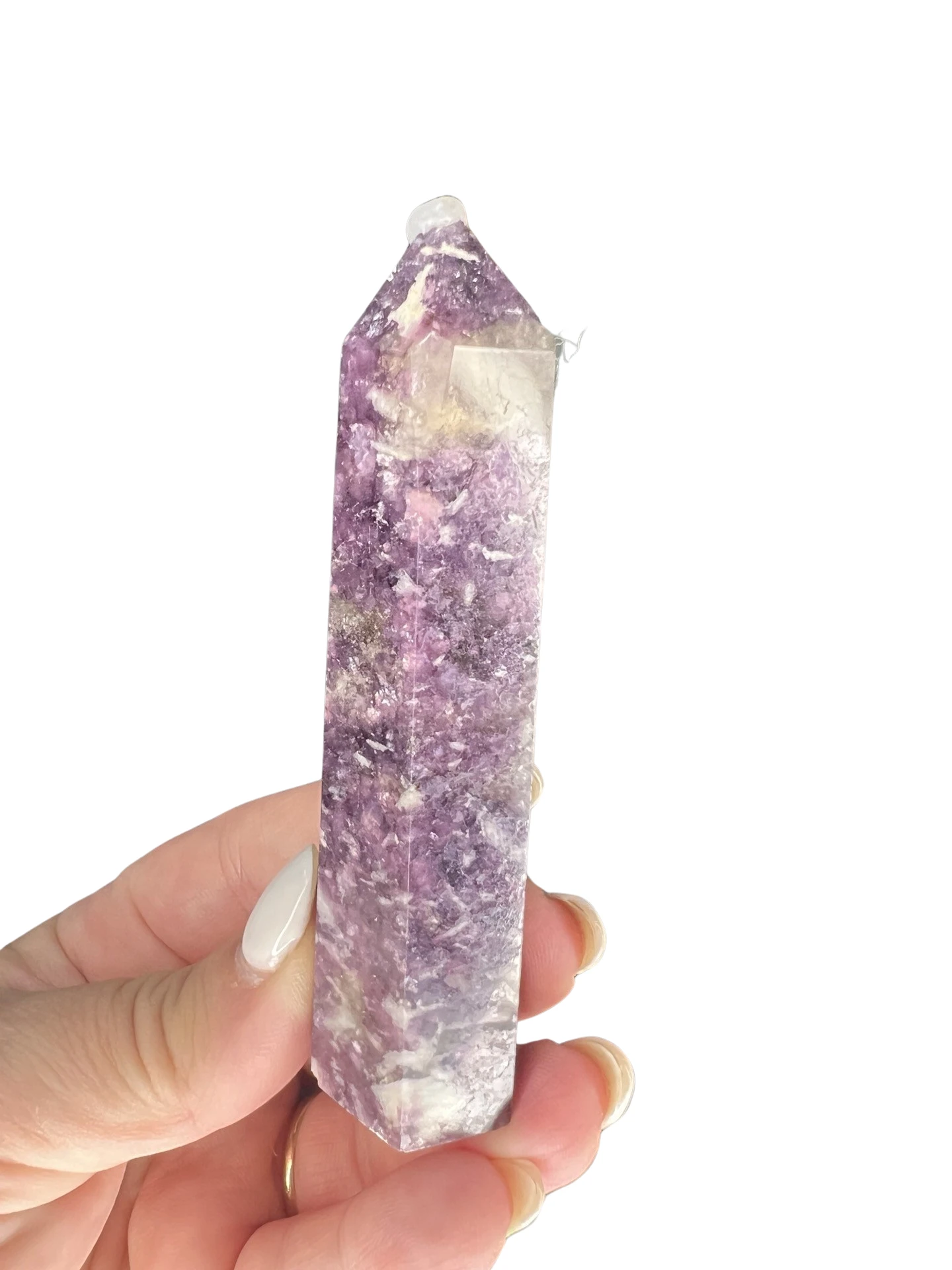 Lepidolite is sometimes called the “peace stone” or “grandmother stone” because it is thought to have nurturing and calming properties. Within the metaphysical realm, lepidolite aids in overcoming emotional or mental dependency and helps treat addictions and all kinds conditions, including anorexia.