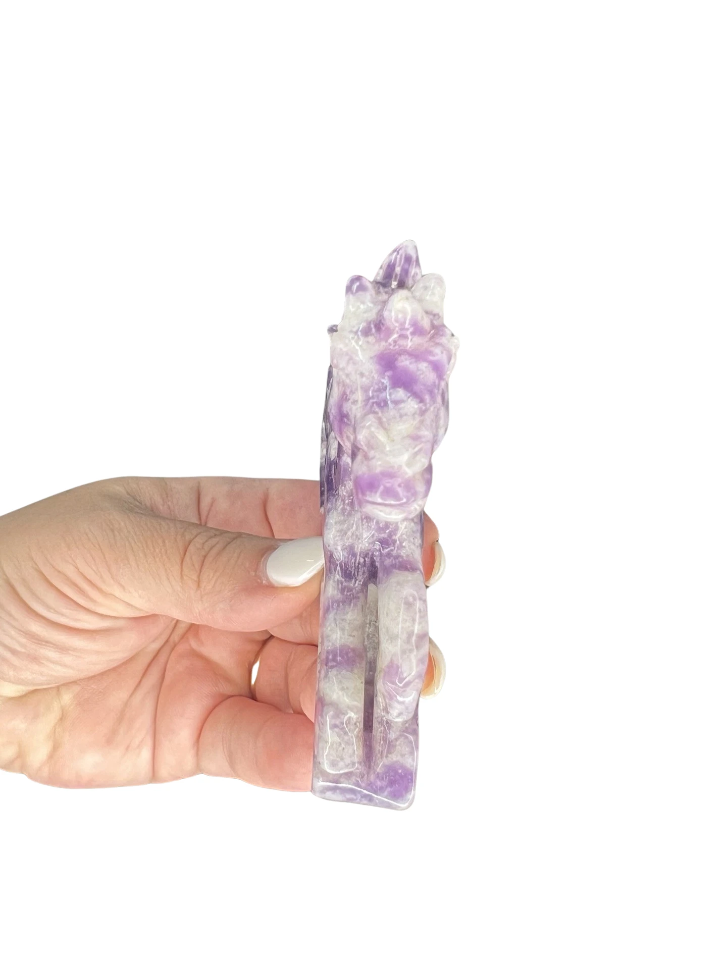 Lepidolite is sometimes called the “peace stone” or “grandmother stone” because it is thought to have nurturing and calming properties. Within the metaphysical realm, lepidolite aids in overcoming emotional or mental dependency and helps treat addictions and all kinds conditions, including anorexia.